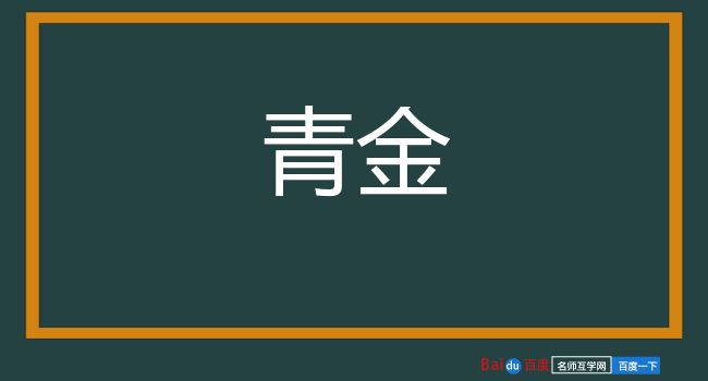 ⒉ 铜矿石的一种,色青黑,可为砚。 宋 王闢之 《渑水燕谈录·事志》:“淄州 淄州县 梓桐山 石门涧 有石曰青金,色青黑相杂,其文如铜屑,或云即自然铜也,理细密。