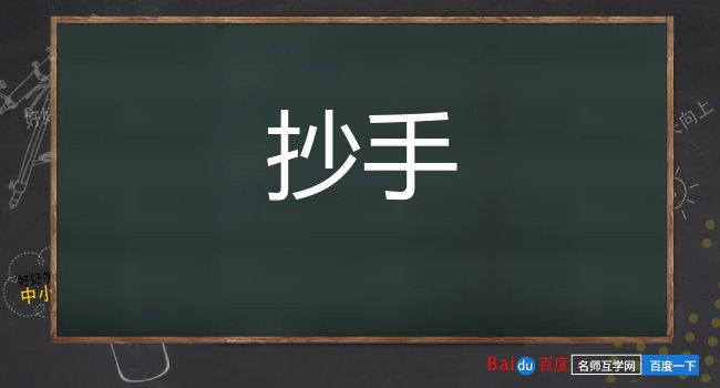 ⒉ 谓左右环抱。房屋建筑中,自二门起向两旁延伸到正房的走廊,叫抄手游廊。