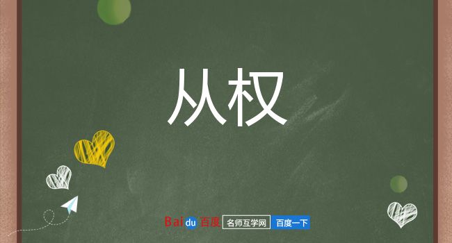 引《逸周书·酆保》:“深念之哉,重维之哉!不深乃权不重,从权乃慰,不从乃溃。”唐 康骈 《剧谈录·凤翔府举兵讨贼》:“咸以巨盗方炽,未可枝梧,众议且欲从权,俟兵集乃图收復。”《三国演义》第七三回:“今宜从权,不可拘执常理。”郭沫若 《高渐离》第五幕:“所以对于四字一句,两句一韵的这一点,便不免从权了。”