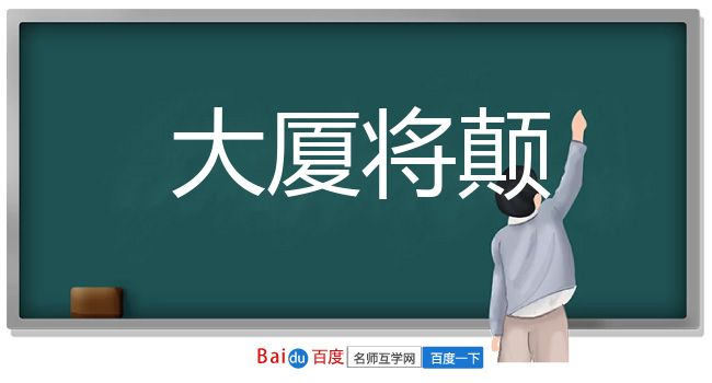 引隋 王通 《中说·事君》:“﹝ 文中子 ﹞退而谓 董常 曰:‘大厦将颠,非一木所支也。’”亦作“大厦将倾”。 丁玲 《太阳照在桑干河上》三七:“从去年她娘家被清算起,她就感到风暴要来,就感到大厦将倾的危机。”