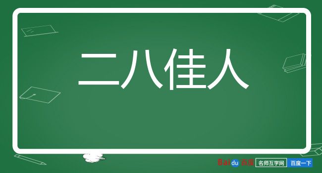 ⒈ 二八:指十六岁;佳人:美女。十五六岁的美女。