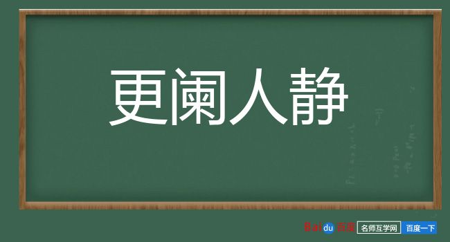 引明 陆采 《怀香记·谋逾东墙》:“更阑人静,东墙月上移花影。”明 无名氏 《寻亲记·唆讼》:“惨淡正黄昏,更阑人静,寳刀光照雪霜痕。”许地山 《信仰底哀伤》:“在更阑人静的时候, 伦文 就要到池边对他心里所立的乐神请求说。”