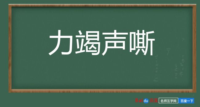 引梁启超 《意大利建国三杰传·结论》:“自设身以当此境,度未有不索然气沮,力竭声嘶,一蹶再蹶,而吾丧我者。”沙汀 《烦恼》:“只是吵声却已经零落了,分散了;并不集中在一处地方,也不再有力竭声嘶的大吵大闹。”