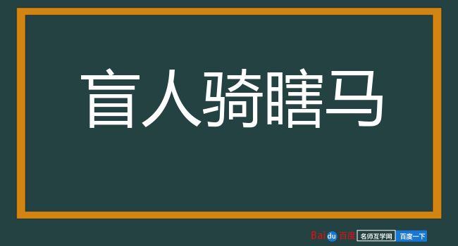 亦作“盲人瞎马”。 鲁迅 《华盖集·北京通信》:“然而向青年说话可就难了,如果盲人瞎马,引入危途,我就该得谋杀许多人命的罪孽。”