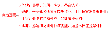 (1)影响农业的自然因素如下: